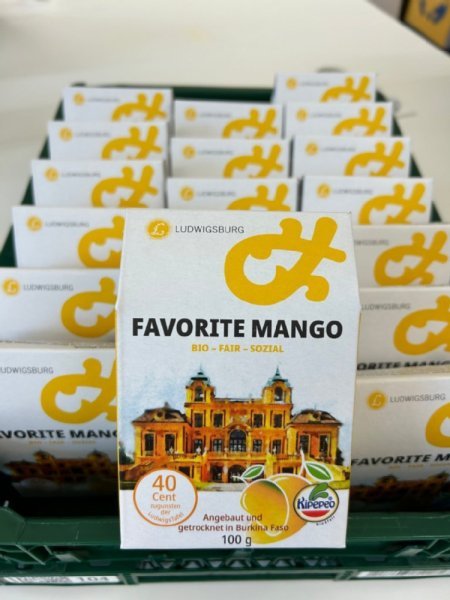 Mit der Favorite Mango wird das Sortiment um ein weiteres faires Produkt mit Ludwigsburg-Label ergänzt. Das Produkt steht für ein Miteinander, das vor Ort beginnt und auf globaler Ebene wirkt. Darüber hinaus wird durch den Kauf ein Beitrag zu lokalem Engagement geleistet. Die meisten fair gehandelten getrockneten Mangos sind nicht in Bioqualität erhältlich. Gleichzeitig sind die meisten Bio-Mangos nicht fair gehandelt.