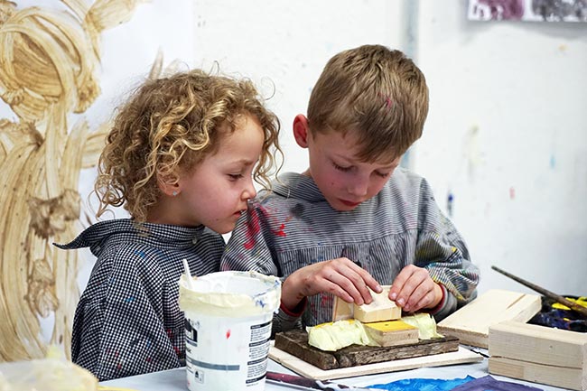 Im Bereich der Bildenden Kunst erlernen die Kinder unter professioneller Begleitung ihrem Alter entsprechend grundlegende Kenntnisse auf den Gebieten der Malerei, Zeichnung und plastischer Gestaltung. Sie können den Umgang mit Werkzeugen und Werkmaterialien erproben und ihre handwerklichen und künstlerischen Fähigkeiten ausbauen.