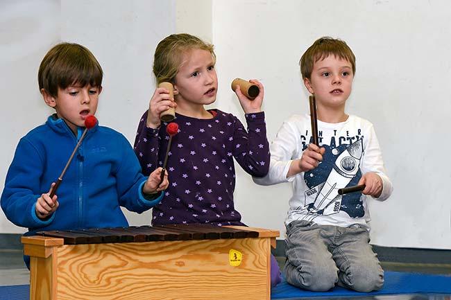 In der 2. Klasse wird das Musizieren mit elementaren Instrumenten (Orff) weiterentwickelt und das Singen und die Liedbegleitung fortgeführt. Notenschrift, Rhythmus-Sprache und Instrumente werden kennengelernt und durch Konzertbesuche ergänzt.