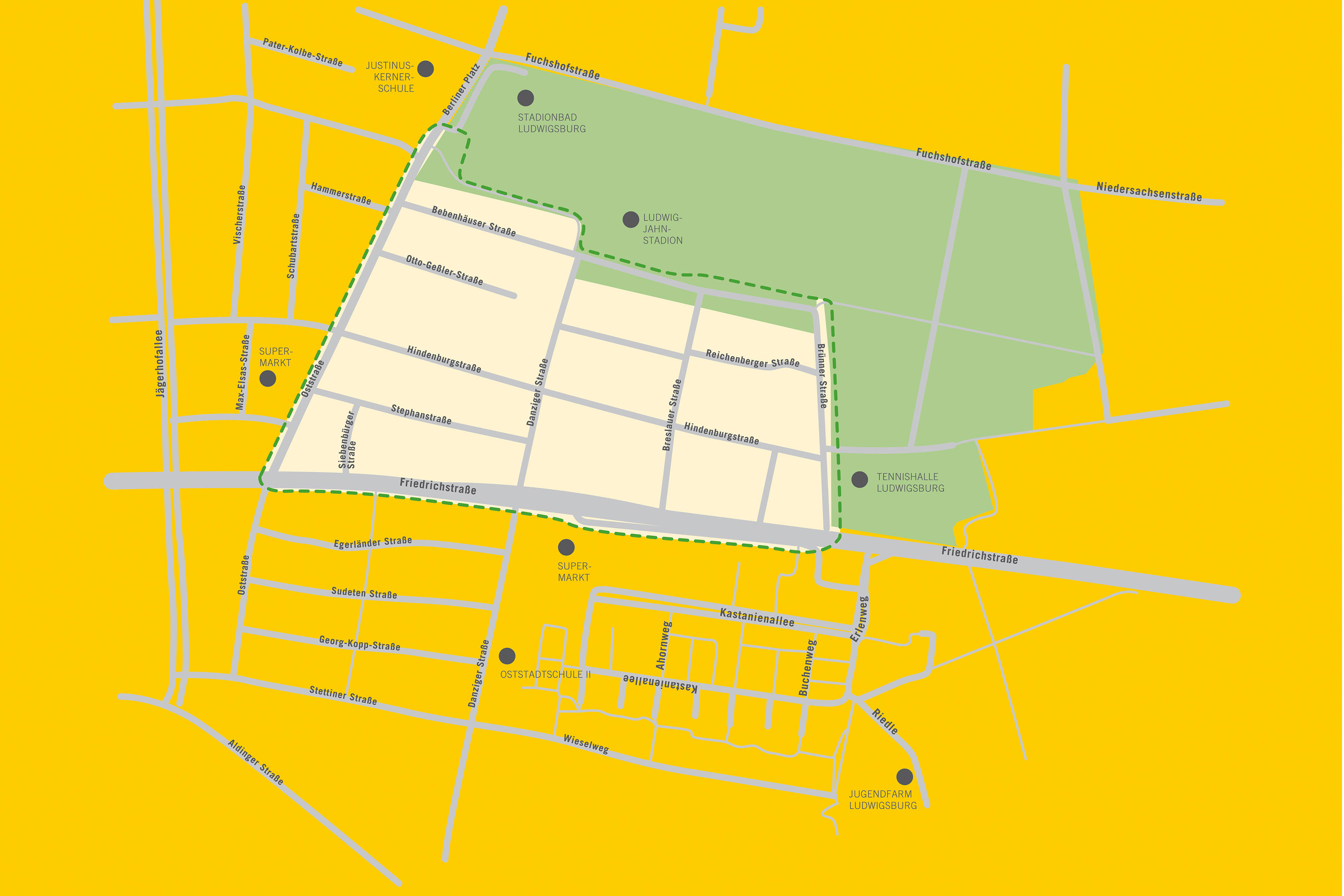 Im Stadionquartier standen energetische Gebäudesanierungen wie Fassadendämmmung oder Austausch der Fenster im Vordergrund. Auch Heizungserneuerungen und der Ausbau der Fernwärme über die Stadtwerke Ludwigsburg-Kornwestheim waren Schwerpunkt. Weiter sollte die Solarenergie im Gebiet stärker genutzt werden. Es galt zusätzlich, mehr Wohnraum zu schaffen und das Wohnumfeld insgesamt aufzuwerten.
