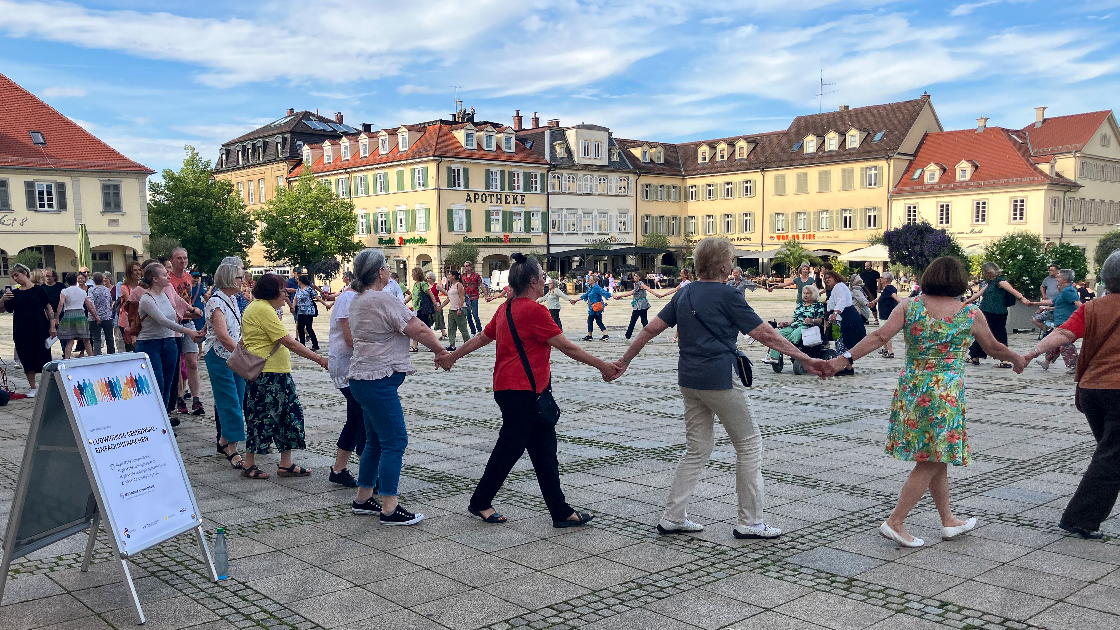 Unter dem Motto „Ludwigsburg gemeinsam – einfach (mit)machen“ hat sich im vergangenen Jahr eine engagierte Initiative zusammengeschlossen. Ihr Ziel ist es, den sozialen Zusammenhalt zu stärken und Begegnungen zu ermöglichen. Im Juli 2024 fanden die ersten gemeinsamen Veranstaltungen auf dem Ludwigsburger Marktplatz statt.