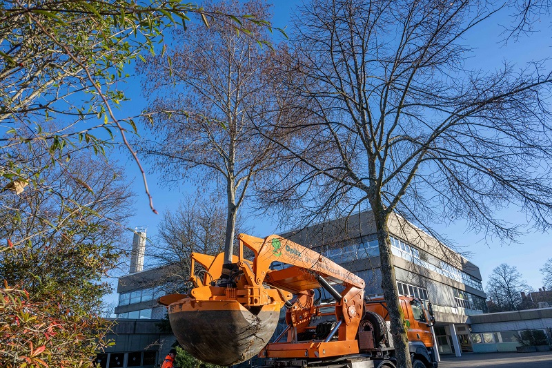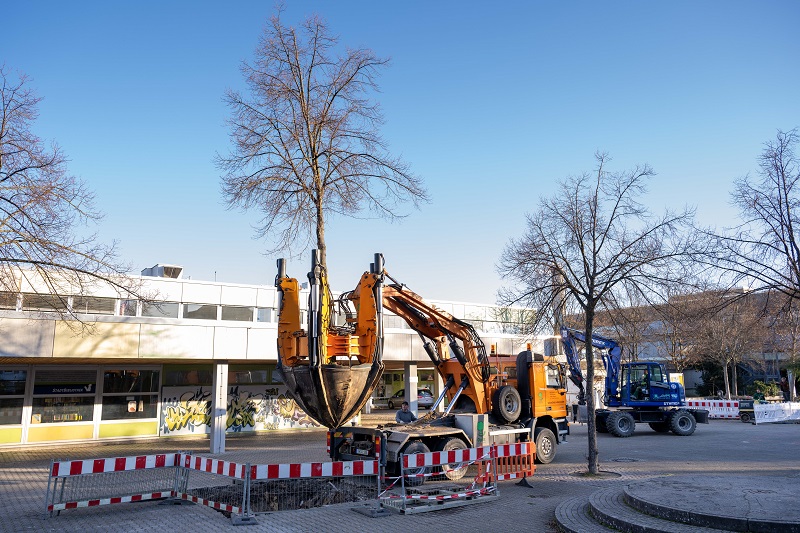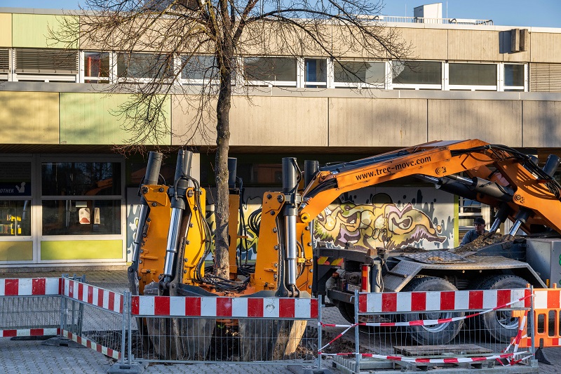Im Februar 2023 begannen am Bildungszentrum West (BZW) die vorbereitenden Maßnahmen für die Baumverpflanzungen. Diese fanden dann in den Faschingsferien statt: 15 Bäume wurden samt Wurzelwerk ausgegraben und zur Römeraue in der Nähe des Römerhügels transportiert, wo sie ihr neues Zuhause finden. Hierfür ist die größte Ballenstechmaschine Europas im Einsatz. 38 Bäume müssen leider gefällt werden.