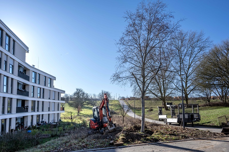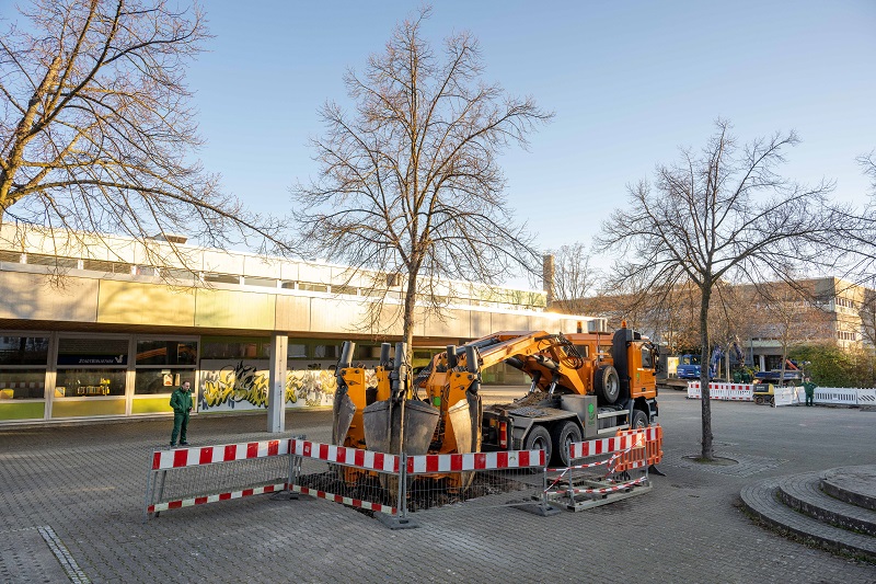 vorbereitenden Maßnahmen für die Baumverpflanzungen