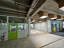 Im April erfolgte der Ausbau der Haustechnik und der abgehängten Decken, in dem Bereich, der Mitte 2023 abgerissen wird. Ein Bauzaun zur Sicherung des Baustellenbereichs wurde unter anderem im Bereich des bisherigen Parkplatzes für Lehrkräfte aufgebaut. Auch der Pausenhof wurde teilweise verlagert, in den Bereich der nördlichen Kleinspielfelder/Hartplätze.