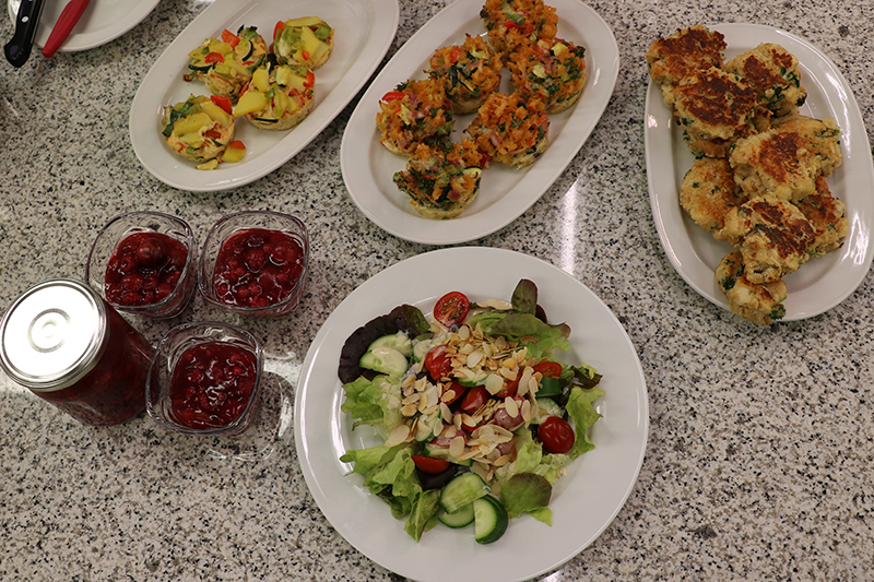 Knapp zwei Stunden nach Beginn des Kurses waren die Gerichte fertig: ein bunter Sommersalat mit Joghurt-Bananen-Dressing und gerösteten Nüssen, Nudelmuffins, Tortillas aus dem Ofen und gebratene Semmelknödel.