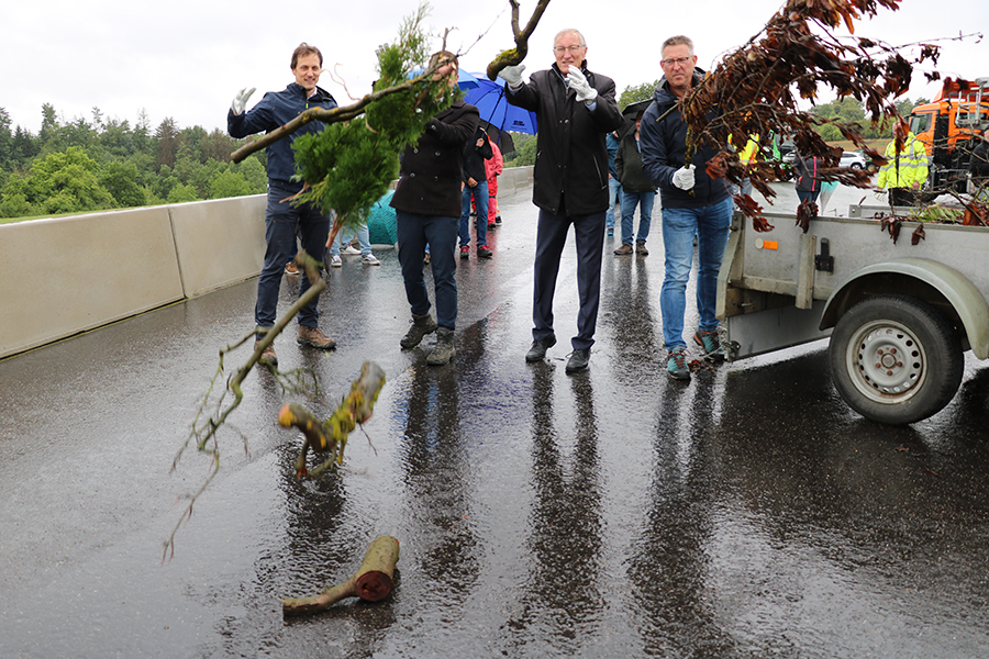Am bisherigen Häckselplatz Haslach war die Fläche lediglich geschottert, sodass Steine als Störstoffe in den weiteren Verarbeitungsprozess gelangten. „Ein weiterer Grund war die Möglichkeit, den Häckselplatz auch gleich zu vergrößern“, erläutert Roland Bernhard in seiner Rede. „Wir haben gemeinsam mit Herrenberg ein geeignetes Grundstück gefunden, das wir in guter Zusammenarbeit gemäß der neuesten Anforderungen an einen Häckselplatz erschließen konnten. Nachdem nun auch die Zufahrtsstraße fertiggestellt ist, deren Bau und Kosten die Stadt Herrenberg übernommen hat, können die Herrenberger Bürgerinnen und Bürger den Platz zur Anlieferung von Baum- und Heckenschnitt nutzen.“