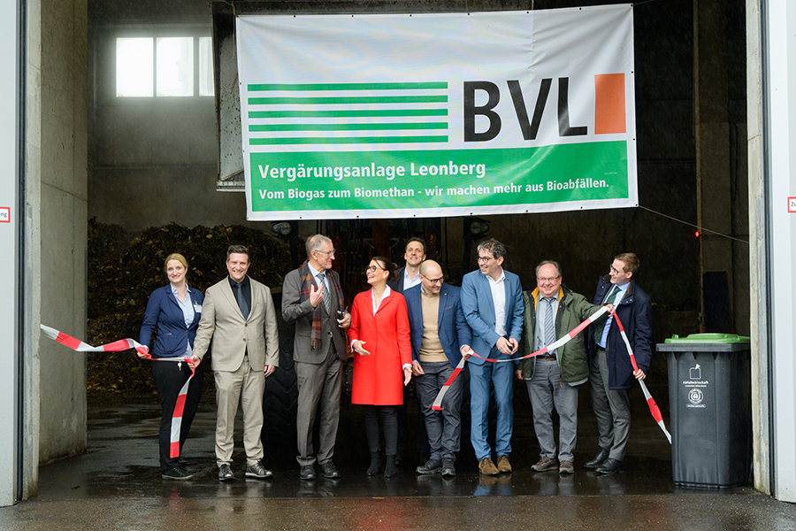 Die Bioabfallverwertung Leonberg GmbH (BVL), ein Gemeinschaftsunternehmen der Landkreise Böblingen und Esslingen, hat heute ihre neue Bioabfallverwertungsanlage auf der früheren Kreismülldeponie in Leonberg feierlich eingeweiht. Die mit einer Jahreskapazität von 72.000 Tonnen größte kommunale Anlage ihrer Art in Baden-Württemberg ist das Herzstück eines hochinnovativen Kreislaufnetzes. An der feierlichen Eröffnung nahmen neben zahlreichen Gästen aus Politik und Wirtschaft auch die Parlamentarische Staatssekretärin des Bundesumweltministeriums, Rita Schwarzelühr-Sutter, teil sowie der baden-württembergische Staatssekretär im Umweltministerium Dr. Andre Baumann. Die Anlage, die nach einem verheerenden Brand im September 2019 komplett neu konzipiert und aufgebaut wurde, wandelt Bio- und Grünabfälle in Biomethangas und weitere wertvolle Endprodukte um.