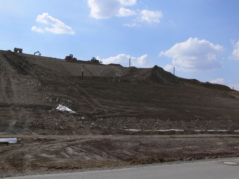 Bauarbeiten während der Oberflächenabdichtung der Deponie Sindelfingen