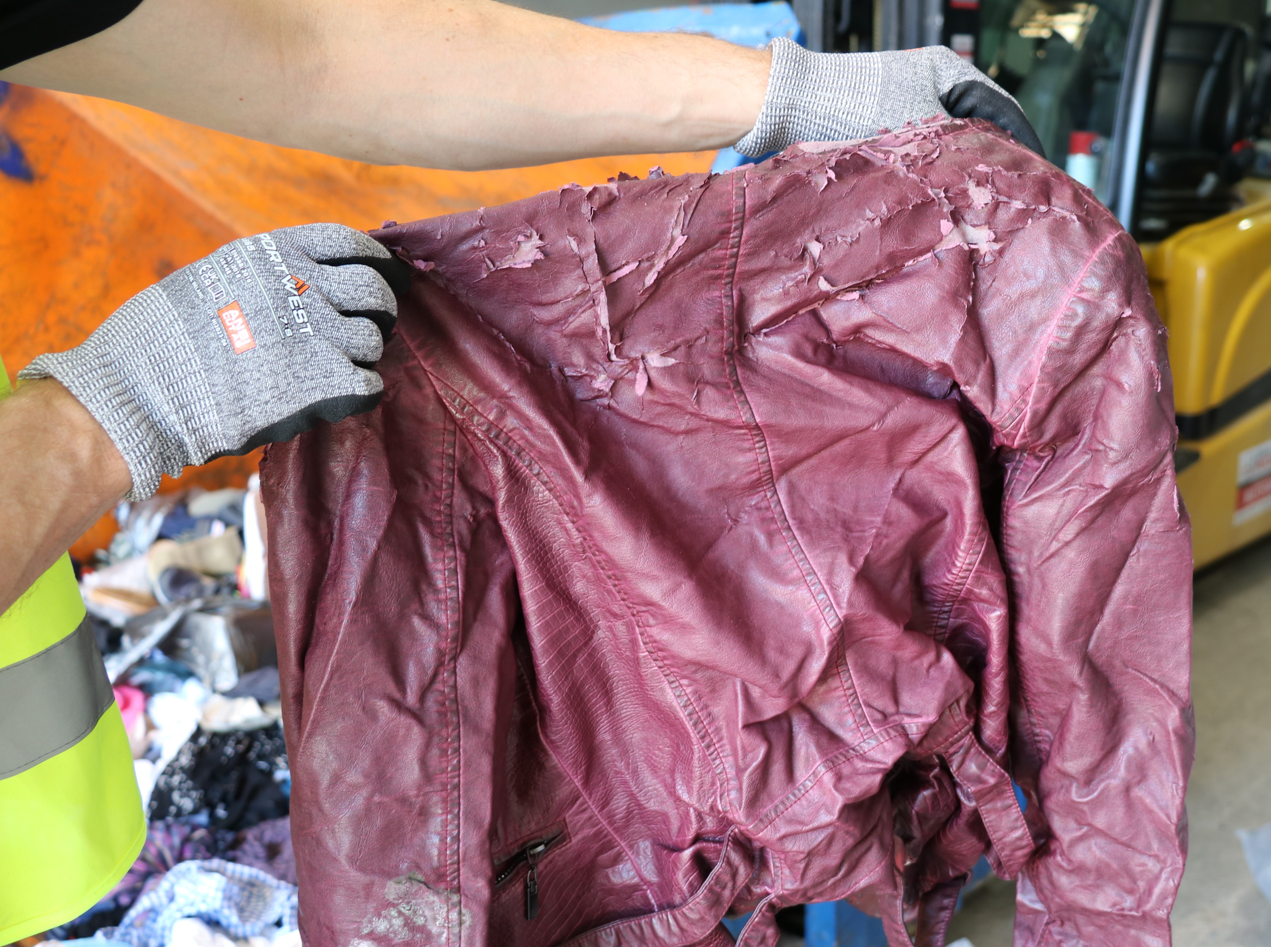 Besonders auffällig ist der starke Anstieg von Fehlwürfen, vor allem von verschmutzten und kaputten Kleidungsstücken, aber auch Teppichen, Kissen und Decken aus Synthetik. Seit 01. Januar 2025 besteht EU-weit die Pflicht zur getrennten Sammlung von Alttextilien. Dies hat deutschlandweit zu Verunsicherung bei den Privathaushalten geführt, was genau in die Kleidercontainer eingeworfen werden darf und was nicht. Dass neben unbrauchbaren Textilien auch Haushaltsartikel wie Tupperdosen, Töpfe, Teller und Tassen, Kinderspielzeug sowie Hygiene- und Babyartikel in den Alttextilien-Containern landen, geschieht aufgrund der fehlenden Verwechslungsgefahr aber wohl nicht „aus Versehen“. Selbst gefährliche Stoffe wie Lacke werden zunehmend in die Container geworfen – eine Gefahr für die Mitarbeiter des AWB und auch für die Allgemeinheit und damit eine strafbare Handlung.