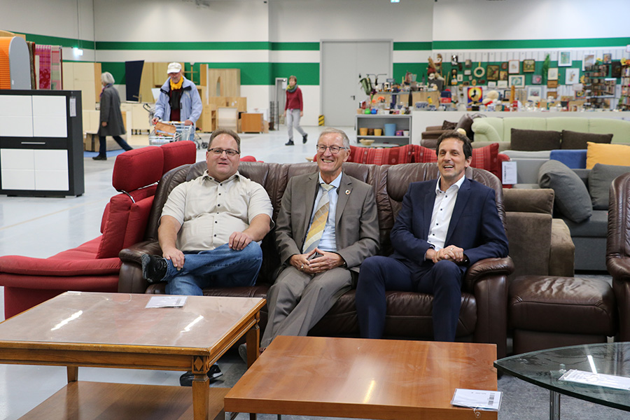 Nach einer umfangreichen Sanierungsphase öffnet die Möbelhalle der Femos gGmbH im Industriegebiet Böblingen-Hulb ihre Tore wieder für Kundinnen und Kunden, die Waren aus zweiter Hand suchen. Am 12. September weihten Landrat Roland Bernhard, Femos-Geschäftsführer Michael Bauer und der Erste Werkleiter des Abfallwirtschaftsbetriebs, Martin Wuttke, die umgebaute Halle für Second-Hand-Waren offiziell ein. Mit dem ersten Öffnungstag gelten auch neue Öffnungszeiten: Das Second-Hand-Kaufhaus ist dienstags bis freitags von 10:00 bis 18:30 Uhr und samstags von 10:00 bis 17:00 Uhr geöffnet.