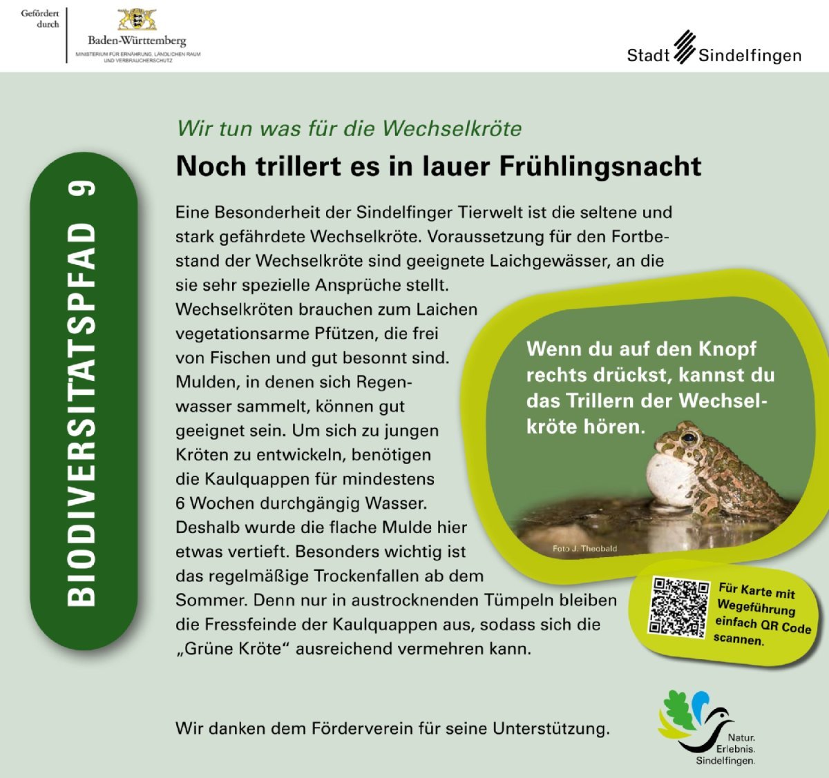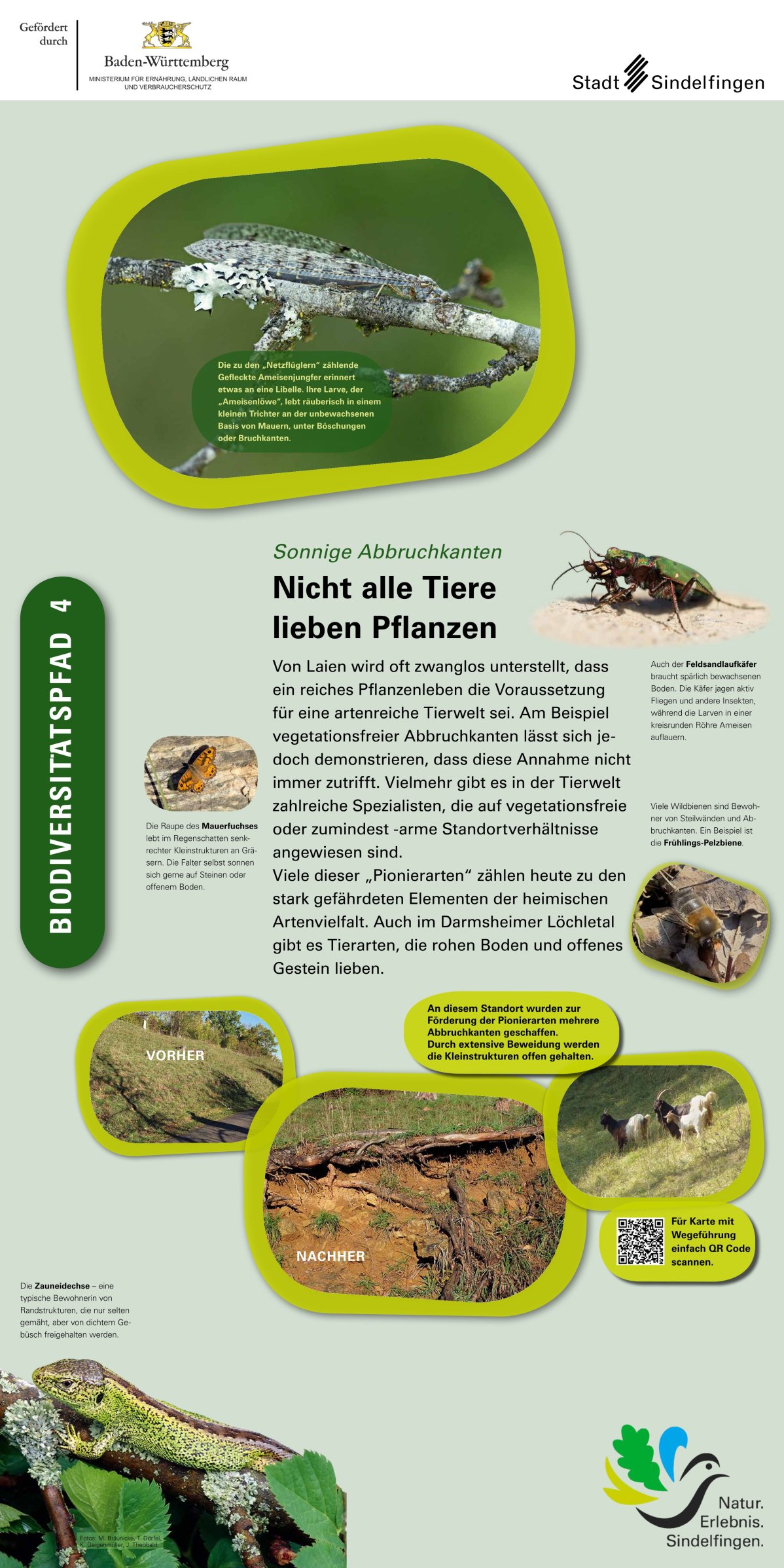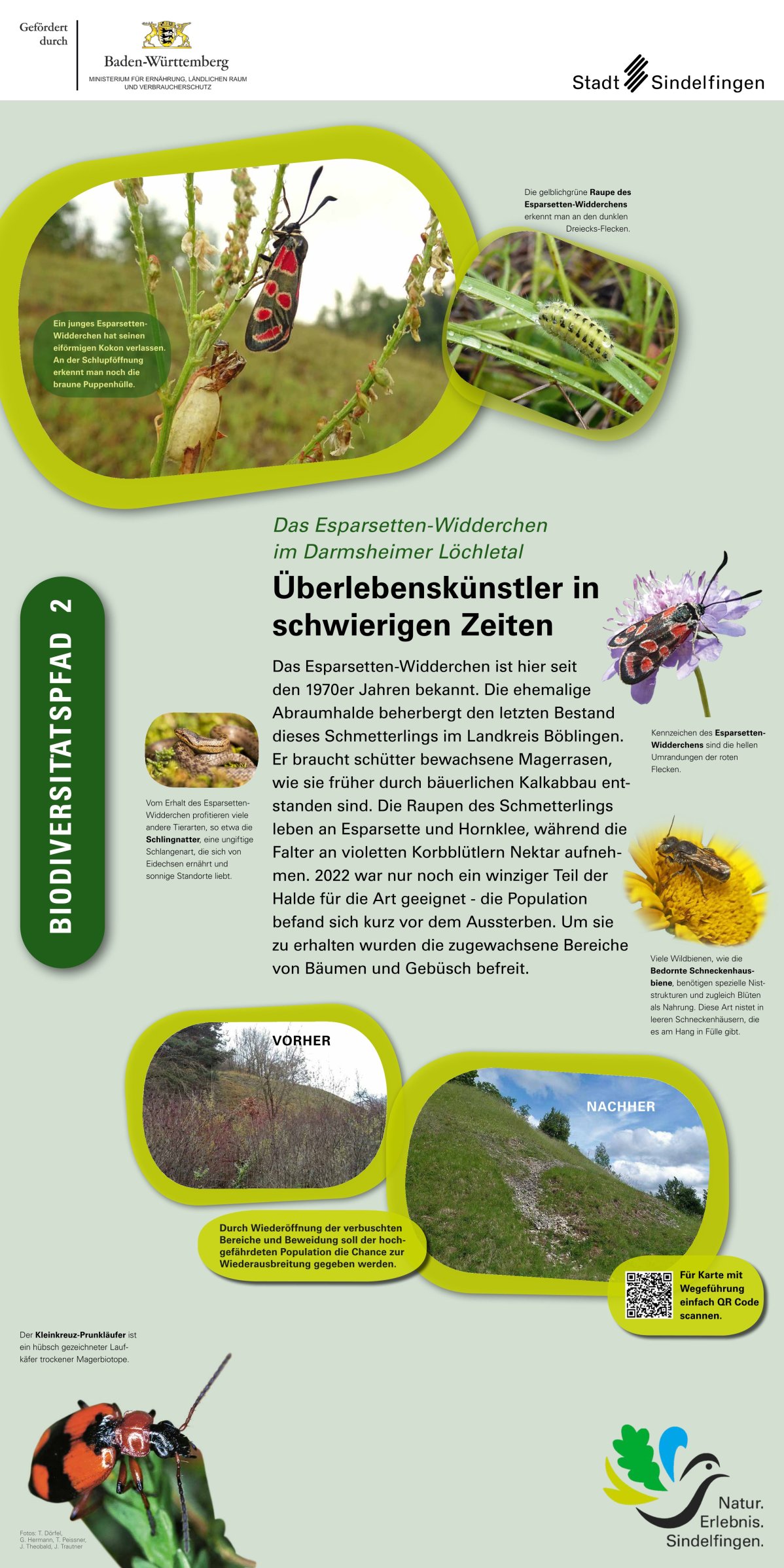 Biodiversitätspfade sind ein Förderprojekt des Landes Baden-Württemberg, bei dem neben den erläuternden Tafeln insbesondere konkrete Maßnahmen zum Schutz und zur Förderung der Biodiversität auf städtischen Flächen umgesetzt werden. Auf dem Pfad werden Ihnen die bedeutsamen Lebensräume des Naturraums zwischen Darmsheim und Maichingen sowie die charakteristischen Tiere und Pflanzen vorgestellt. Lassen Sie sich bei Ihrem Rundgang von der Vielfalt des Löchletales inspirieren, welches bereits seit 1992 als Naturdenkmal unter Schutz steht.