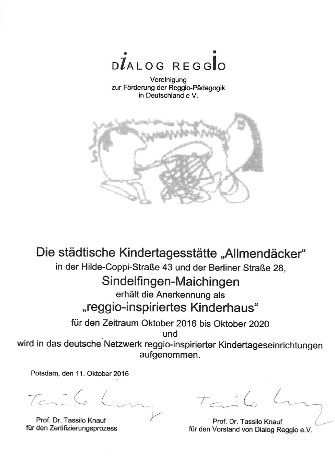 Wir sind seit Oktober 2016 ein reggio-inspiriertes Kinderhaus