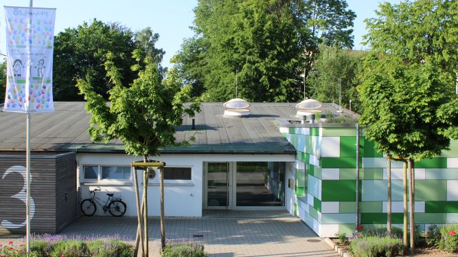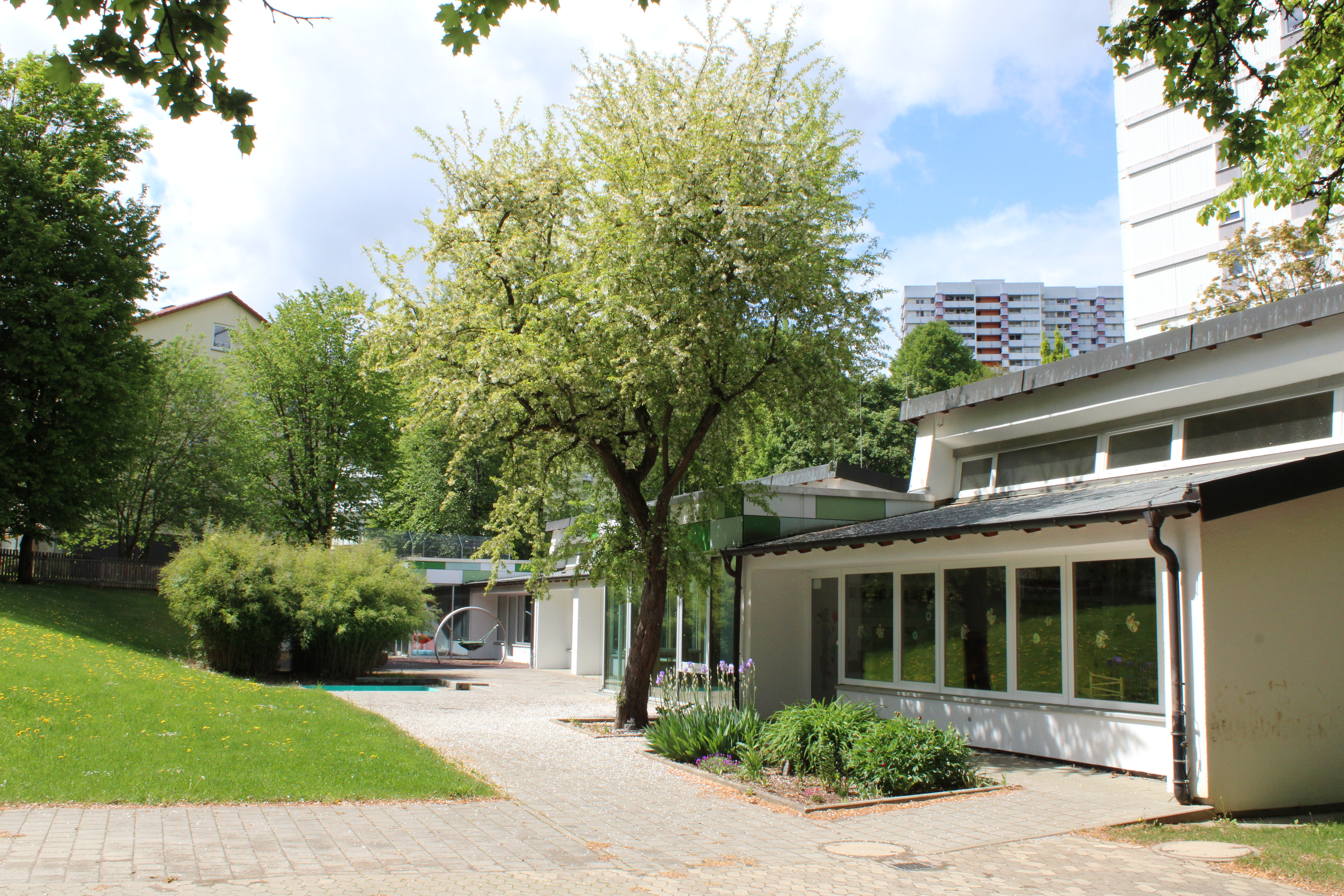Besonders zu erwähnen ist vor allem der schön angelegte Garten, der im Winter zum Rodeln und im Sommer zum Baden im Planschbecken einlädt. Die Kinder spielen im Sommer unter natürlichen Schattenspendern. Durch die vielen, hohen Bäume sind die Kinder aktiv und intensiv am Wandel der Jahreszeiten beteiligt.