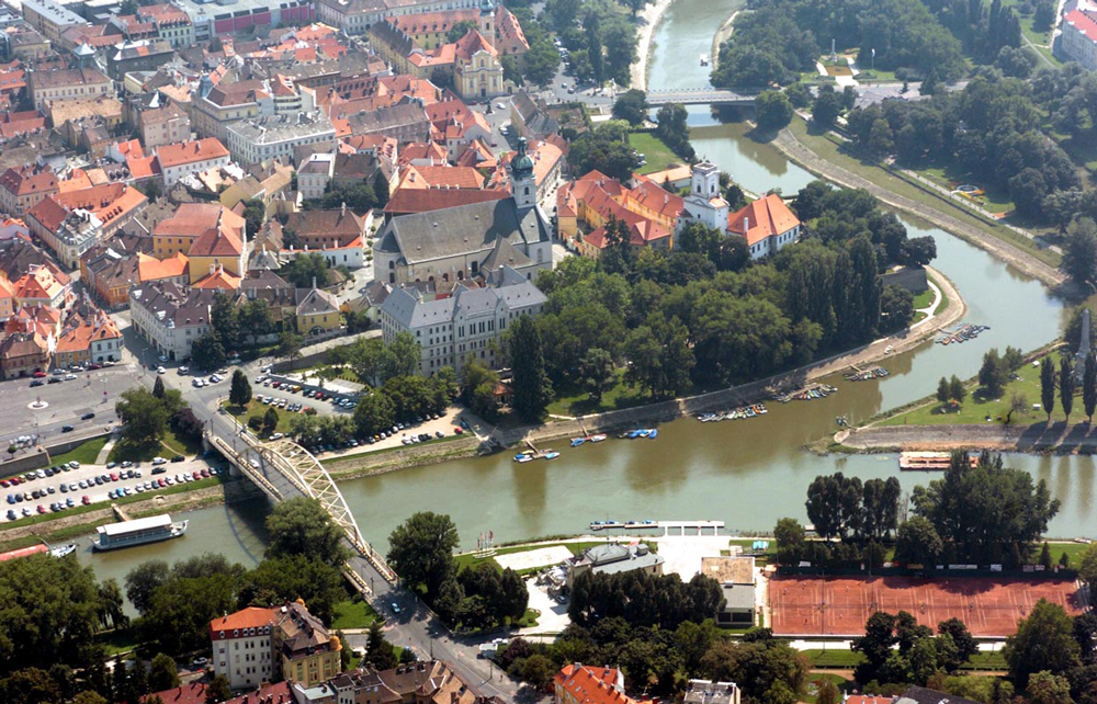 Die Komitatshauptstadt mit ihren 130.000 Einwohnern des Regierungsbezirkes Györ-Moson-Sopron liegt in der Mitte zwischen Wien und Budapest am Zusammenfluss von Raab (Rába) und Rabnitz (Rábca) mit der Donau (Mosoni-Donau) und ist das zweitgrößte Industrie- und Handelszentrum Ungarns.