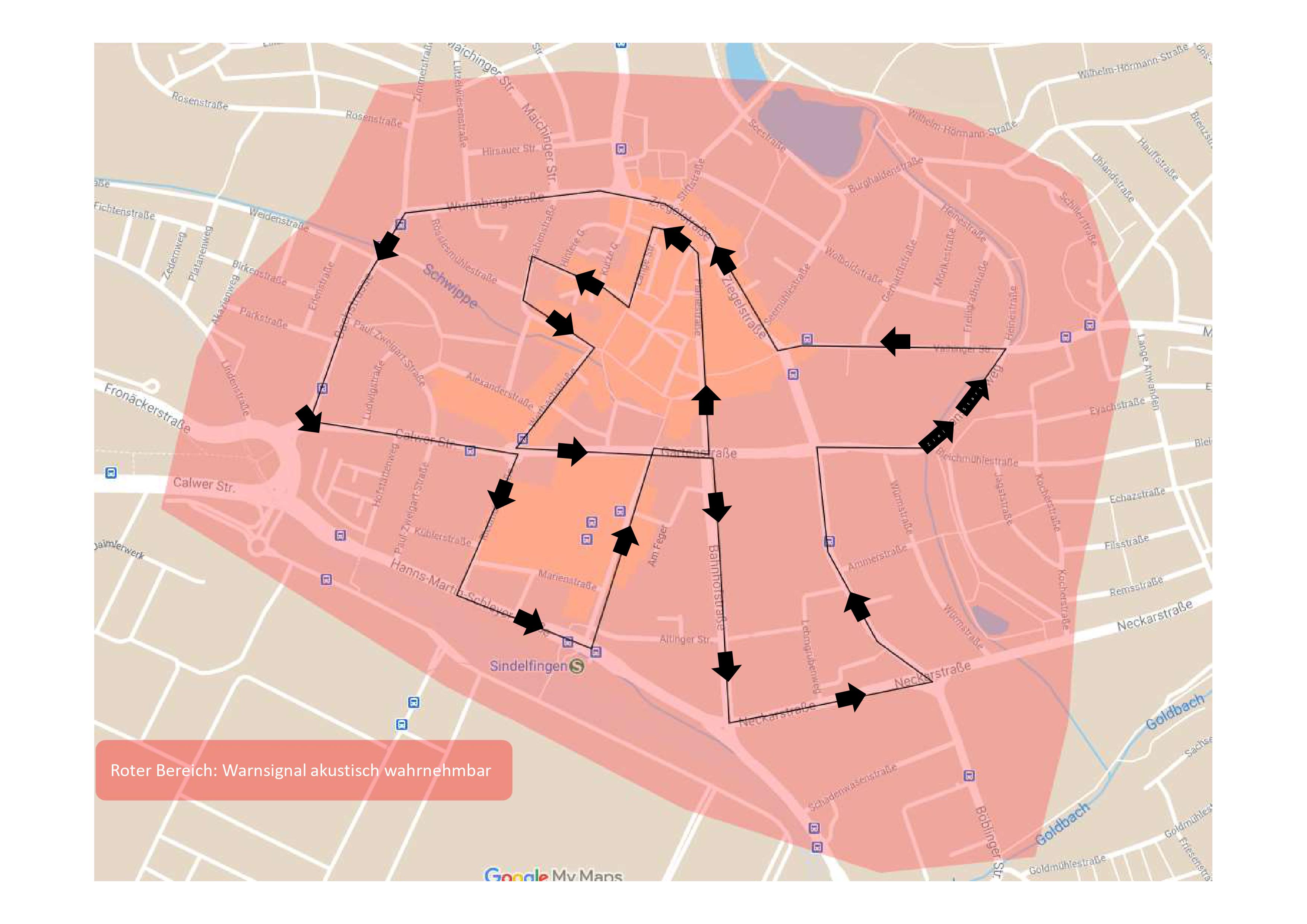 Zusätzlich zur digitalen Warnung erfolgten außerdem gebietsweise Testfahrten mit drei mobilen Sirenen/Lautsprecherfahrzeugen im Innenstadtbereich sowie in den beiden Ortskernen der Teilorte Darmsheim und Maichingen. Hierbei konnte die Stadt Sindelfingen wichtige Erkenntnisse zur Reichweite der im Landkreis Böblingen flächendeckend genutzten mobilen Sirenen/Lautsprecheranlagen sammeln.